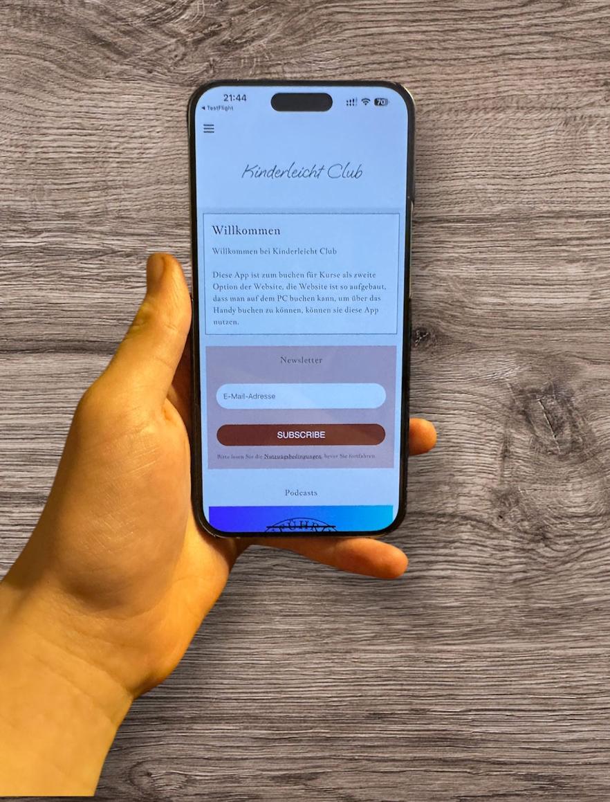 Lade dir jetzt die kostenlose Kinderleicht Club App herunter, und buche deine Kurse jetzt Mobil.